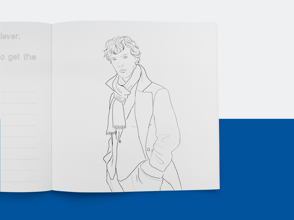 This illustrated colouring in activity book, celebrates Mr Cumberbatch with a series of black and white drawings for you to colour in. All you need is some colour pencils, felt tip pens, good old crayons… or would watercolours suit this posh poster boy better?
